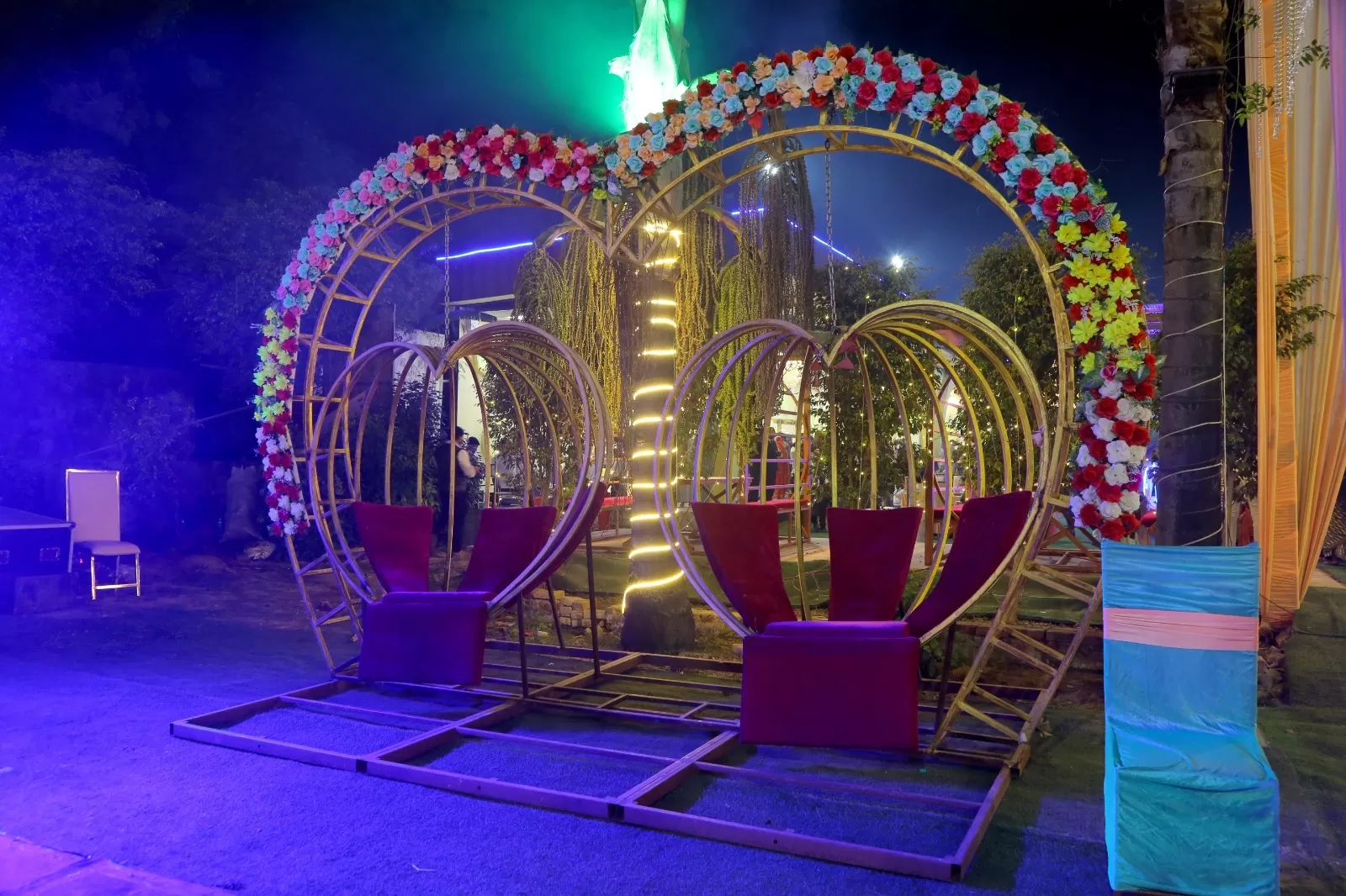 The indoor party area is beautifully designed with premium interiors, elegant lighting, and a spacious layout that creates a luxurious ambiance. This hall is ideal for: