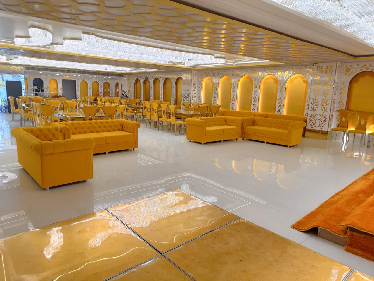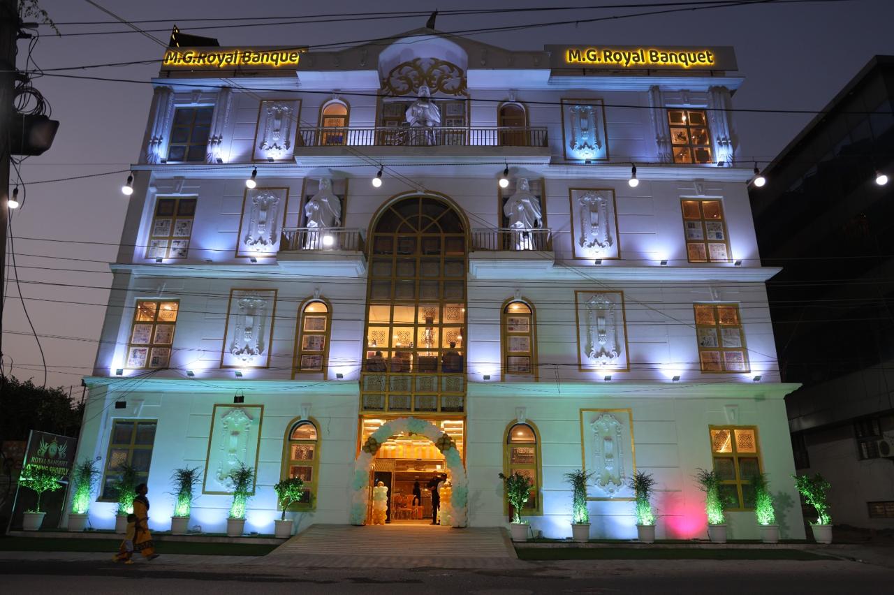 MG Royal Banquet in Dwarka, Delhi, is a stylish venue featuring three banquet halls, each accommodating up to 200 guests. Perfect for weddings, receptions, pre-wedding rituals, birthdays, anniversaries, reunions, and corporate events, it offers an intimate yet luxurious setting. Located just 10 minutes from Dwarka Mor Metro Station, the venue is easily accessible for guests. The in-house team of decorators crafts stunning settings, while the catering team serves delicious veg and non-veg dishes. Additional facilities include ample parking, changing rooms, and accommodations for outstation guests.